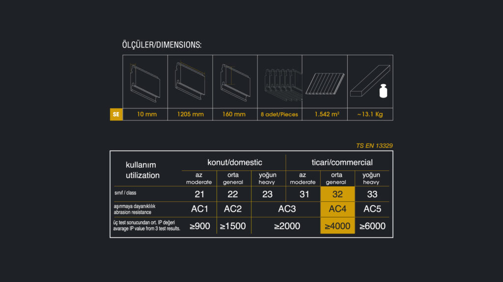 - 32 ve 33.sınıf parkeler ise insan yoğunluğunun çok fazla olduğu yerlerde tercih edilir.